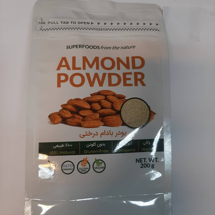 آرد بادام محصولی جدید با تمام مجوزهای بهداشت، سیب سبز سلامت، مجوز سازمان غذا و دارو بدون گلوتن ۲۰۰ گرم #وگان